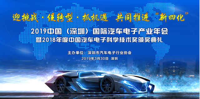 在春风和煦充满希望的三月,由深圳市汽车电子行业协会主办的《2019中国(深圳)国际汽车电子产业年会,暨2018年度中国汽车电子科学技术奖颁奖典礼》,在深圳机场凯悦酒店大宴会厅隆重举行,本届年会的主题为:迎挑战、促转型、抓机遇、共同推进“新四化”。
